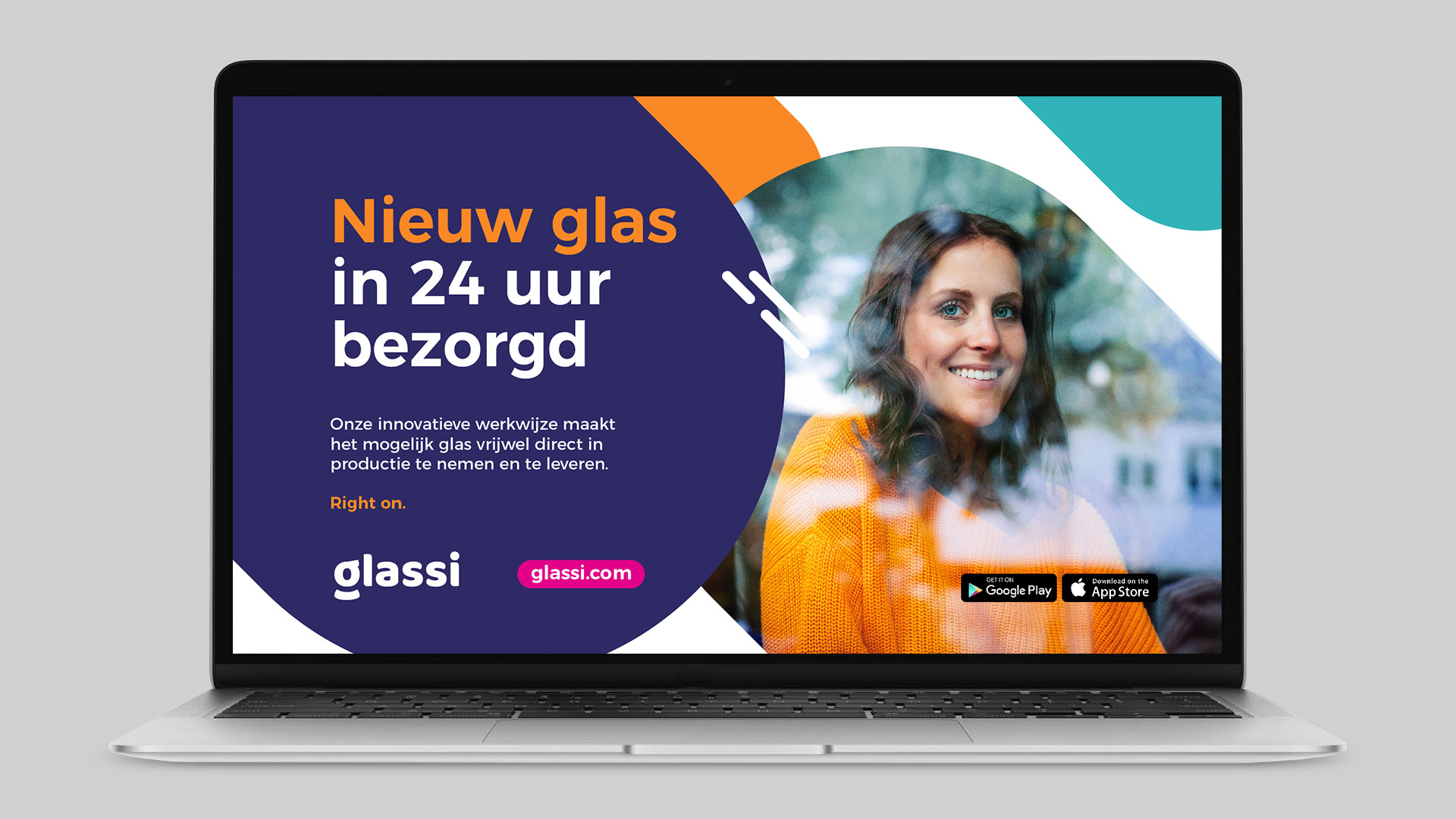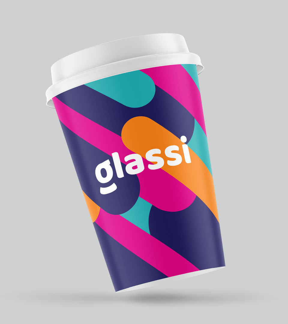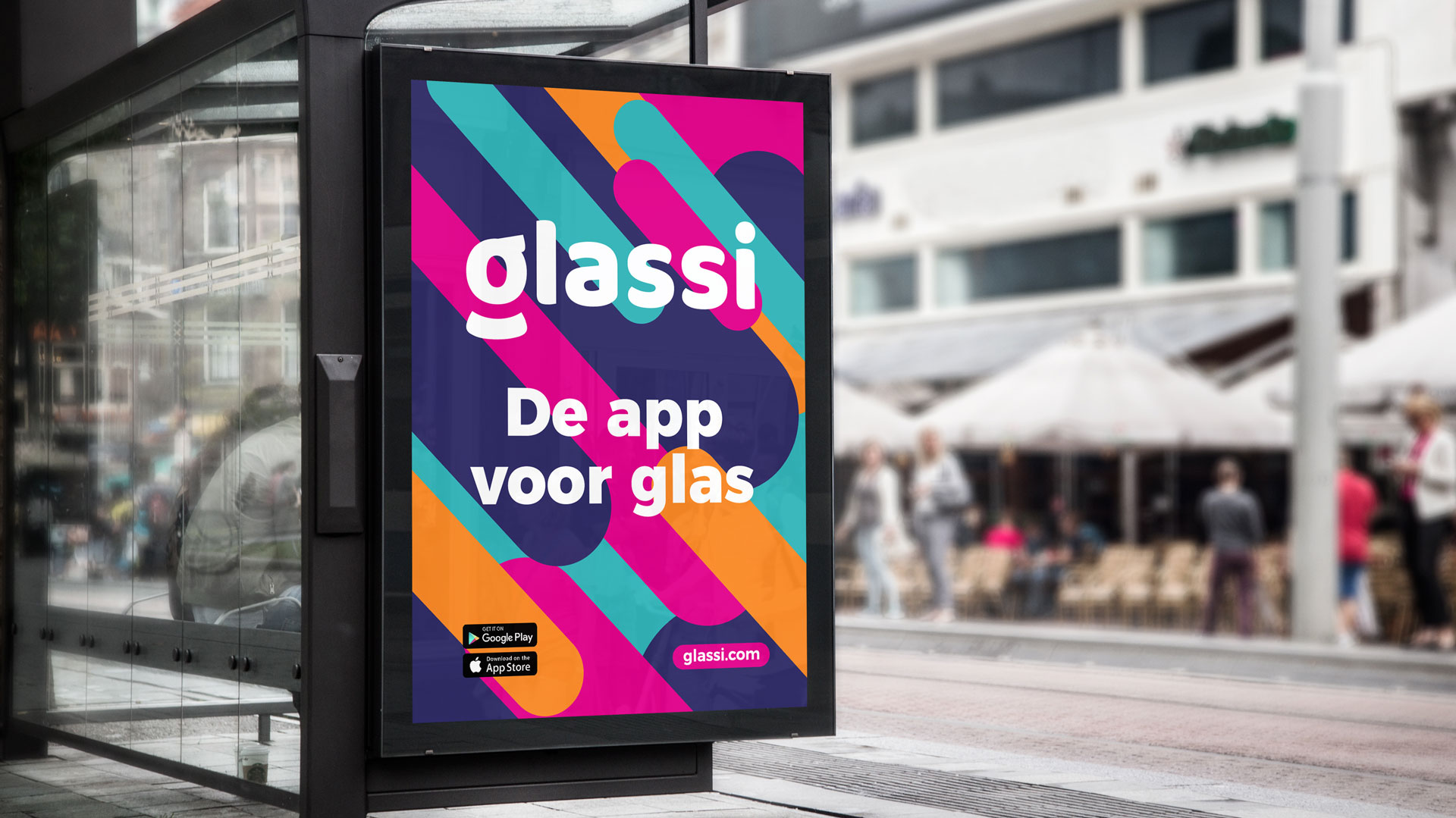 Op basis van de ronde vormentaal is een stijl voor achtergronden gemaakt. Deze bestaat uit stroken met ronde uiteinden, in een lijn van 45 graden (van linksboven naar rechtsonder). Waardoor er een opvallend, karakteristiek en speels ‘veld’ ontstaat. Idealiter voeren de kleuren paars en turquoise de boventoon en zijn oranje en magenta als fellere accentkleuren in de minderheid.
